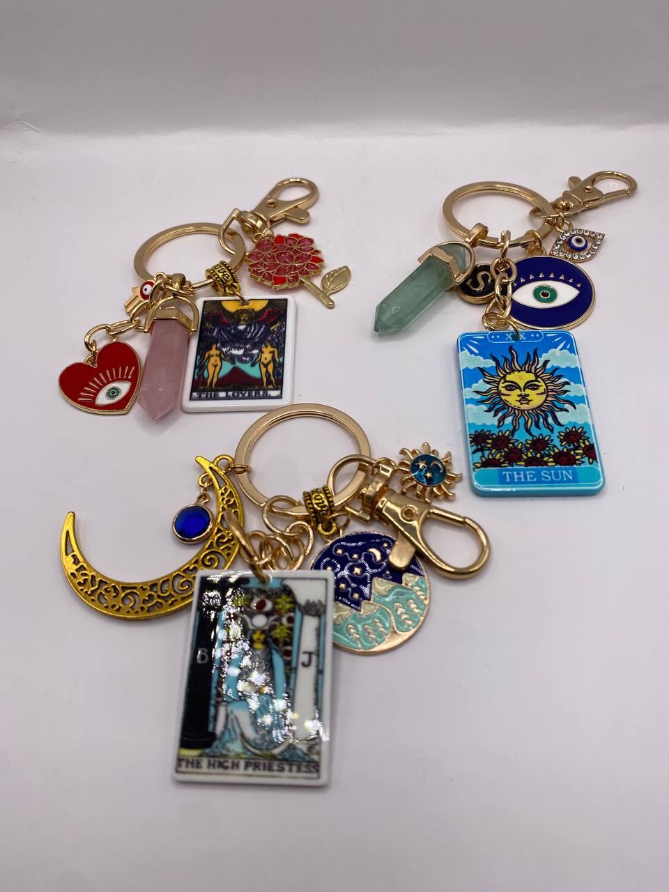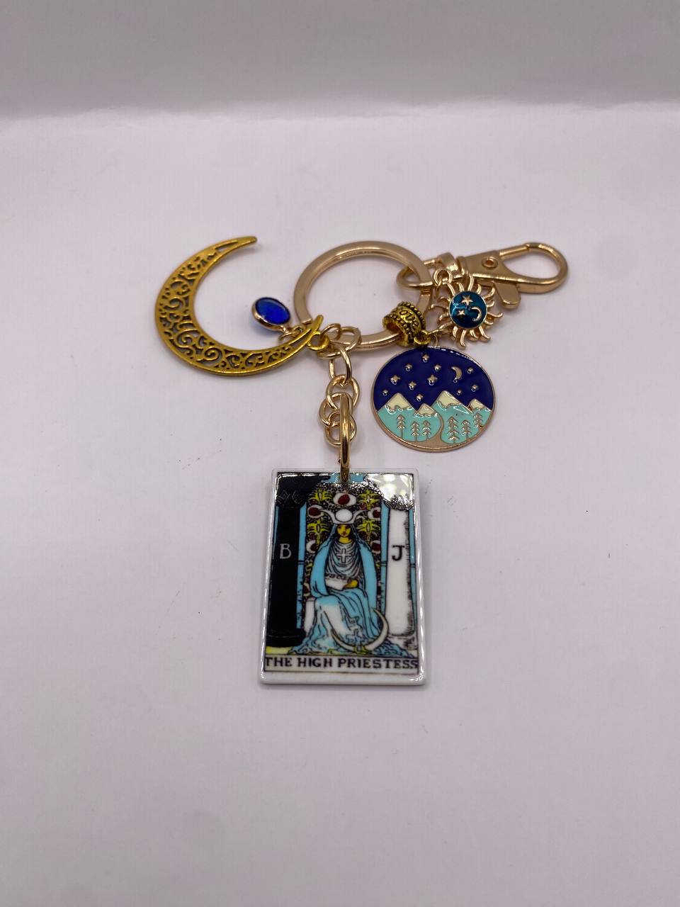 Llavero con mini cartas de tarot, ideal para atraer energía positiva y protección diaria. Un accesorio místico que combina estilo y espiritualidad, perfecto para quienes buscan equilibrio y conexión interior.